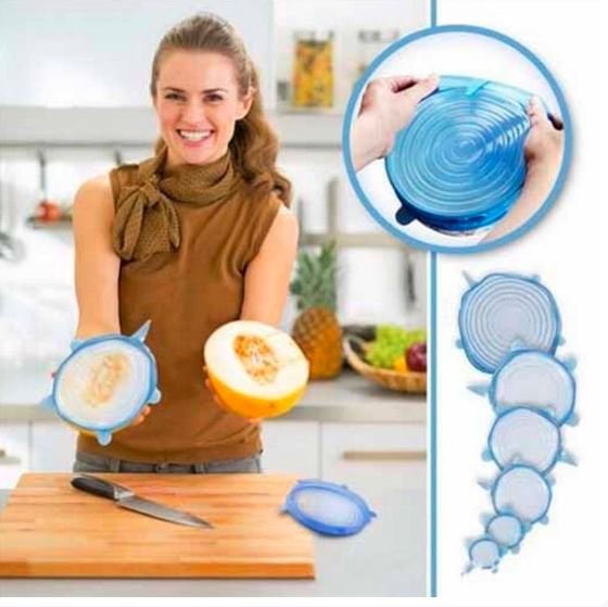 Silicone Stretch and Save storage covers come in 6 conveinent sizes for Bowls,pots,Cans,Jars & Mugs.