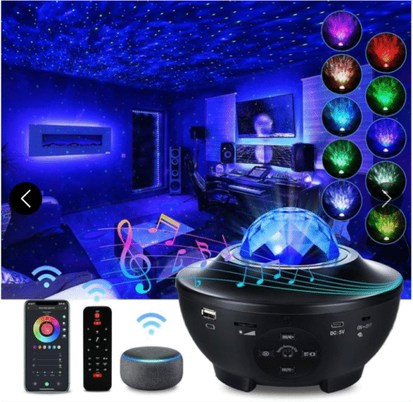 - Combines a galaxy projector with ocean wave effects for mesmerizing visuals
