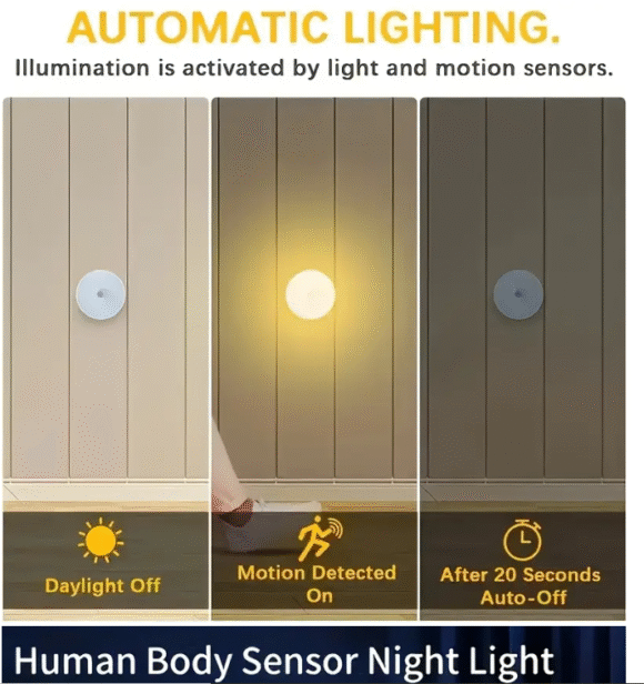 • Human Body Induction Constant Light: In addition to the sensor night light, it can also be used as a flashlight for emergency use