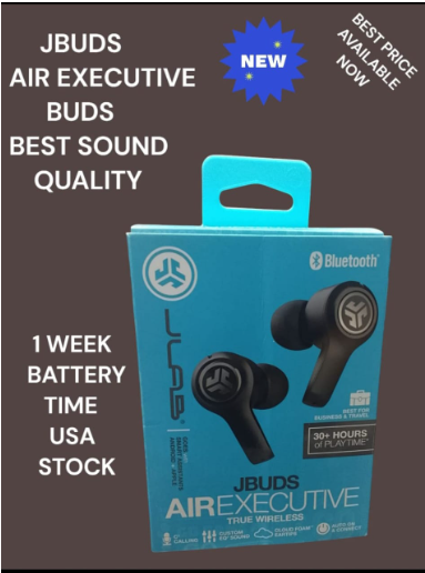 - The JLab JBuds Air Executive True Wireless Earbuds combine functionality with style, offering premium sound quality and convenience for everyday use and travel.