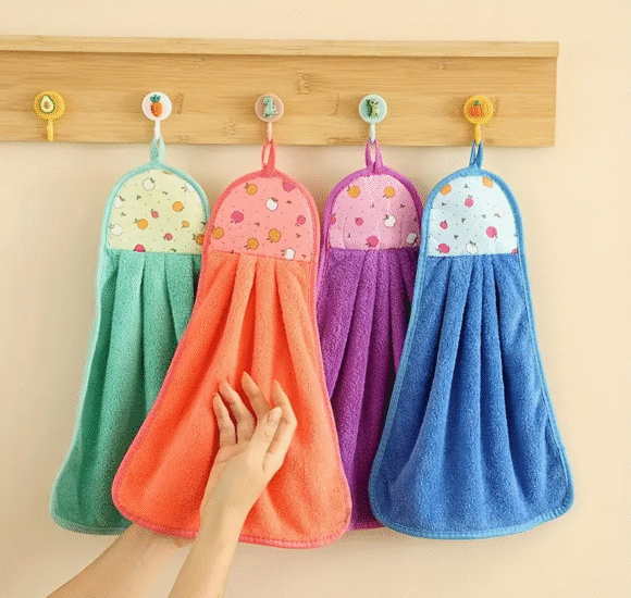 Soft, absorbent hanging hand towel – perfect for drying hands or cleaning in homes, bathrooms, and hotels.