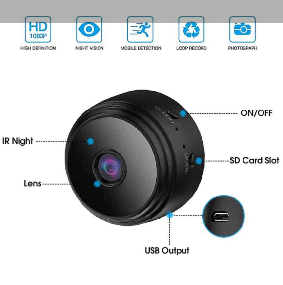 The A9 Mini WiFi Camera offers compact, high-quality surveillance with HD video, night vision, and remote access via a mobile app. Its magnetic backing makes it easy to install, while motion detection and loop recording ensure efficient, around-the-clock monitoring. Perfect for keeping an eye on your home, loved ones, or workspace—anytime, anywhere
