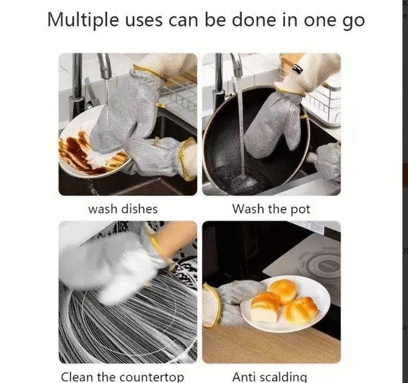 Upgrade your kitchen cleaning routine with these premium anti-scalding, oil-proof steel wire gloves. Designed for durability and safety, they feature heat insulation to protect your hands from hot cookware, while the strong steel wire fibers easily scrub away stubborn grease, burnt residue, and tough stains without damaging surfaces. Perfect for dishwashing, pot and pan scrubbing, and bowl cleaning, these gloves offer excellent grip and long-lasting performance. Ideal for household and kitchen use.