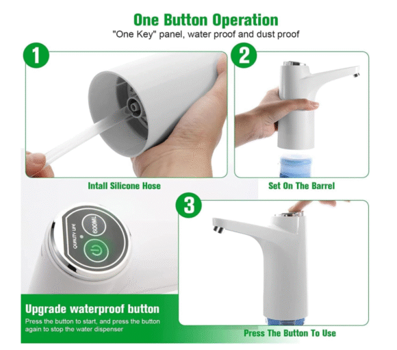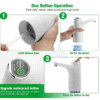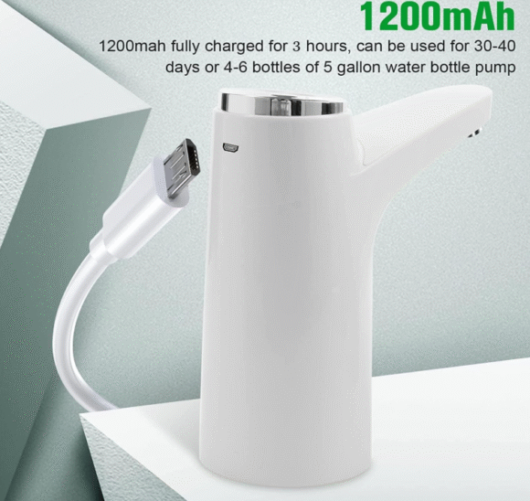 This sleek, touch-operated water dispenser pump provides effortless hydration with a single tap. Equipped with a 1200mAh rechargeable battery, it delivers long-lasting performance and fits most standard water bottles and gallons. Perfect for home, office, or outdoor use.