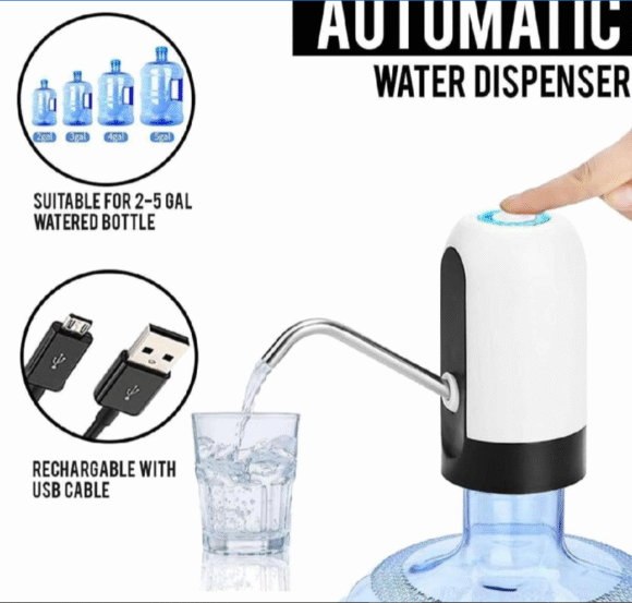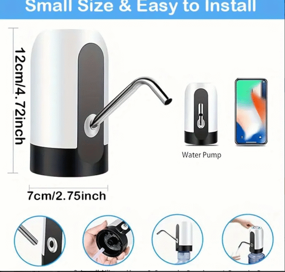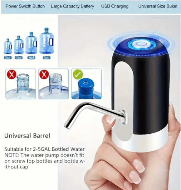 Make drinking water effortless with this portable electric water bottle pump. Designed to fit 11.36–18.93 L bottles, it features a one-touch operation for easy, hands-free water dispensing. The USB rechargeable battery ensures long-lasting use, making it perfect for home, office, picnics, and outdoor activities. Compact and lightweight, this pump offers spill-free, hygienic water access anytime, anywhere.