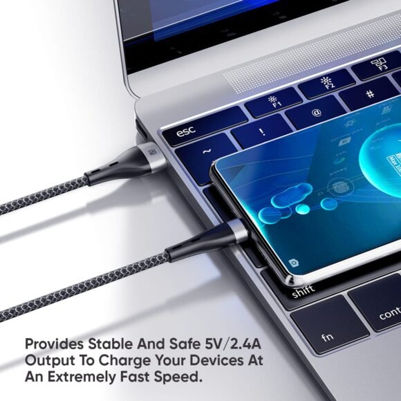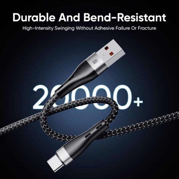 Durable USB-A to Type-C cable with bend-proof design, fast charging, data transfer, and tangle-resistant build.